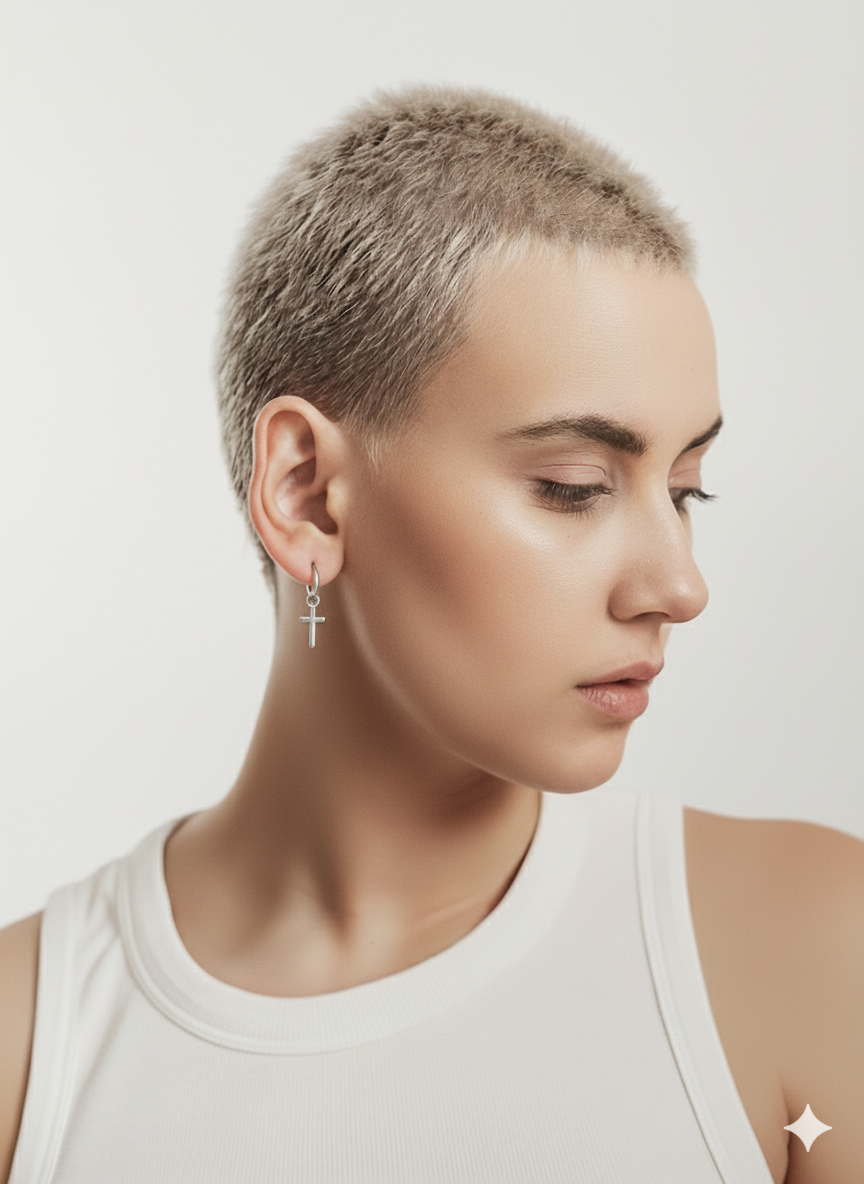 Bone Cross Hoop Earrings – Silver Gothic Dangle