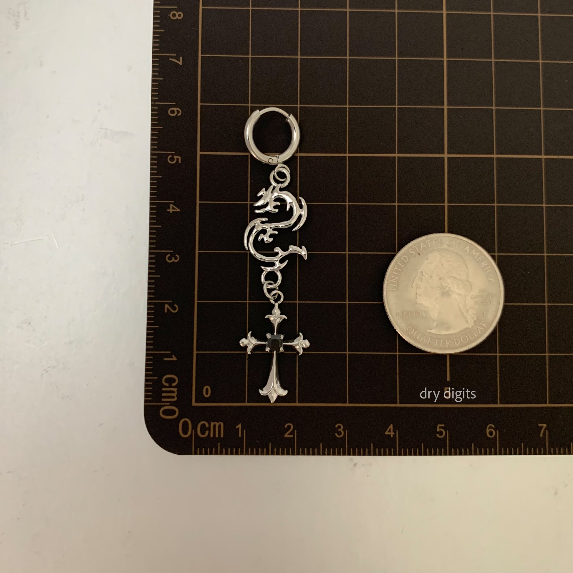 Dragon Cross Drop Hoop Earrings – Silver Gothic Dangle