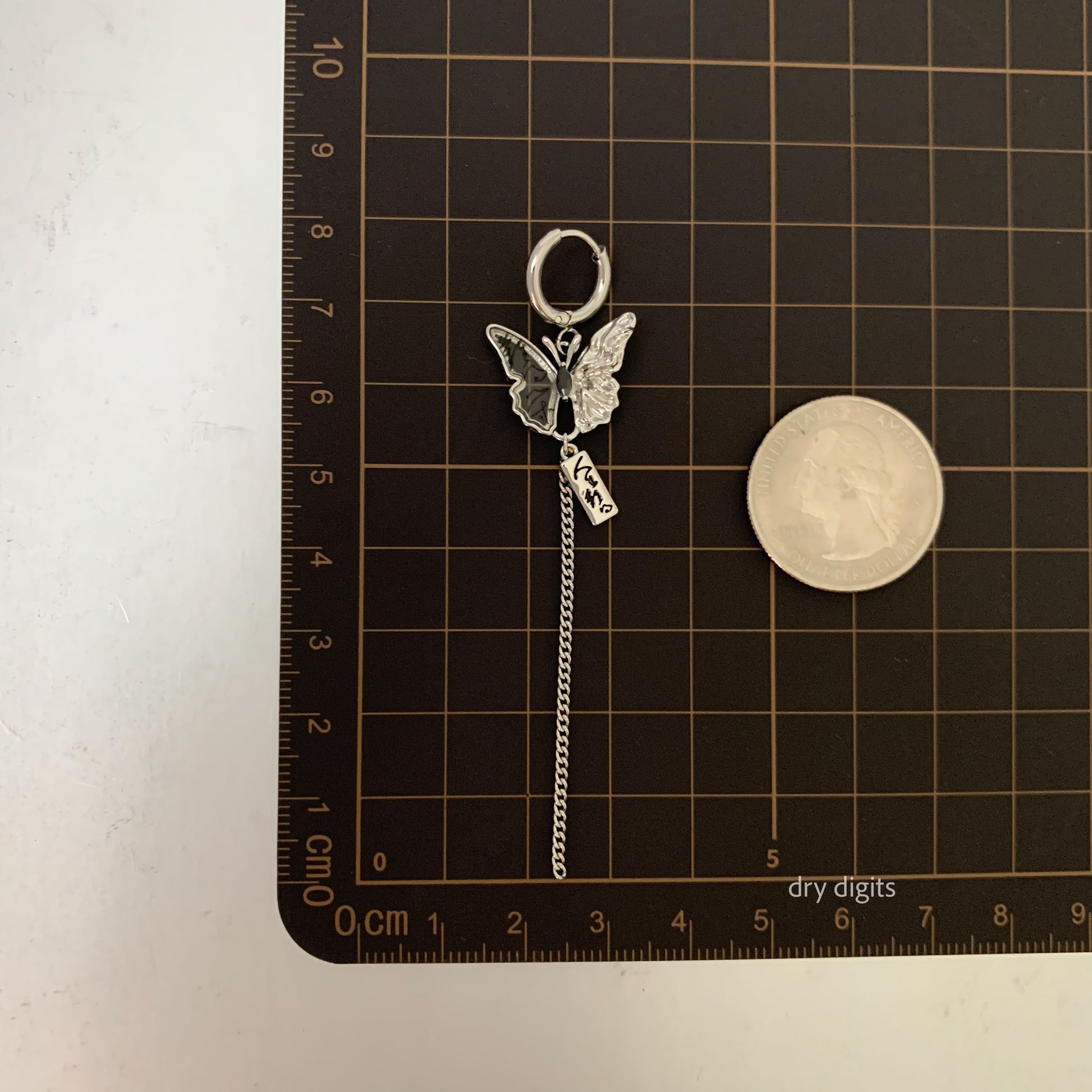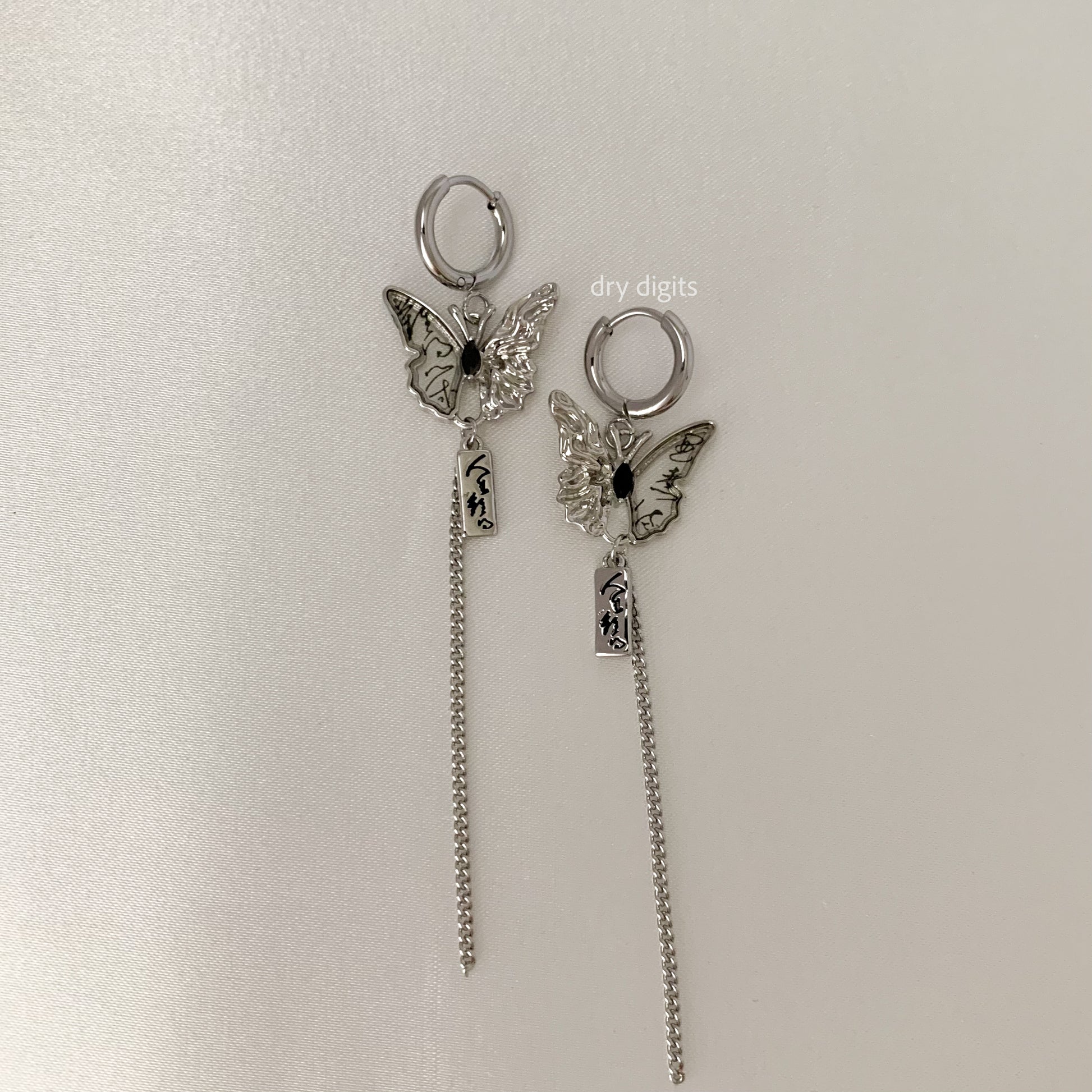 Mismatched Butterfly Chain Hoop Earrings – Silver Long Dangle Set