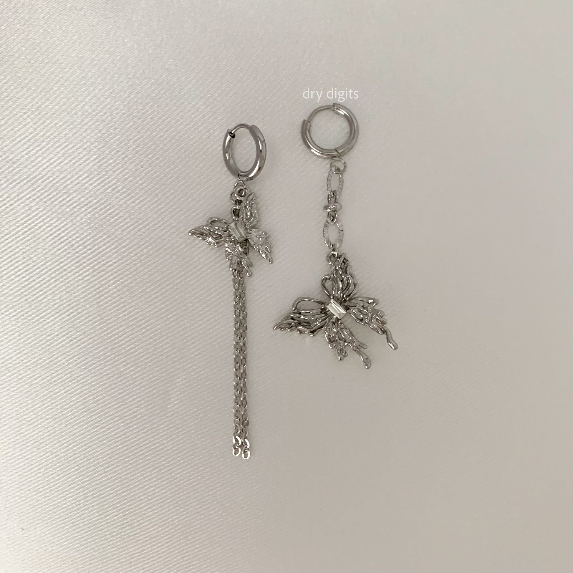 Mismatched Silver Butterfly Chain Hoop Earrings – Long Dangle Set