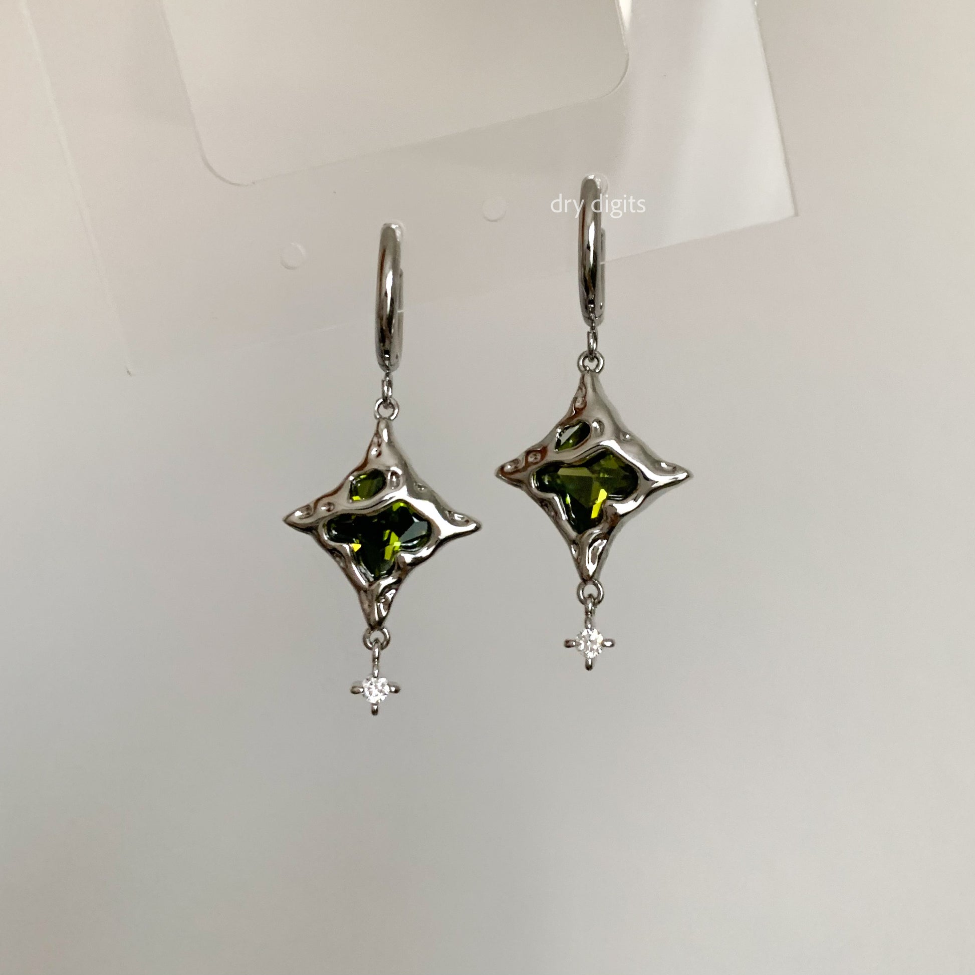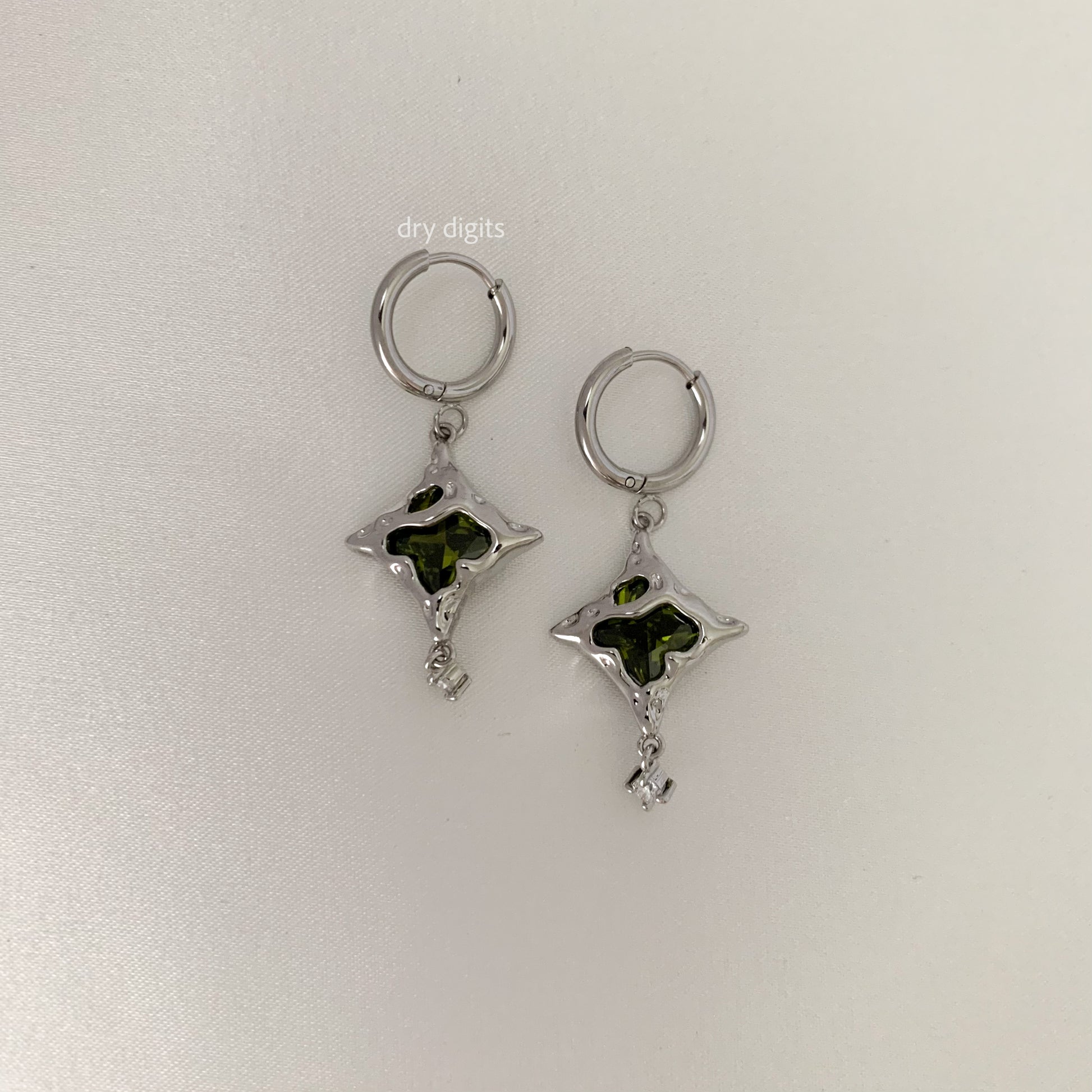 Molten Green Star Hoop Earrings – Irregular Gem Dangles