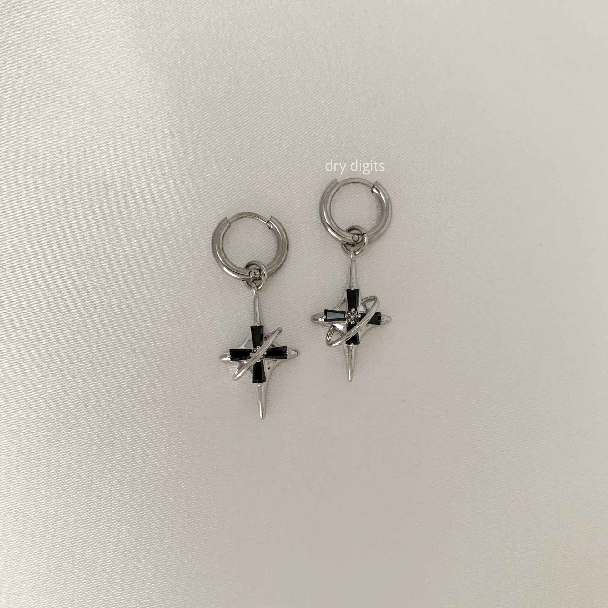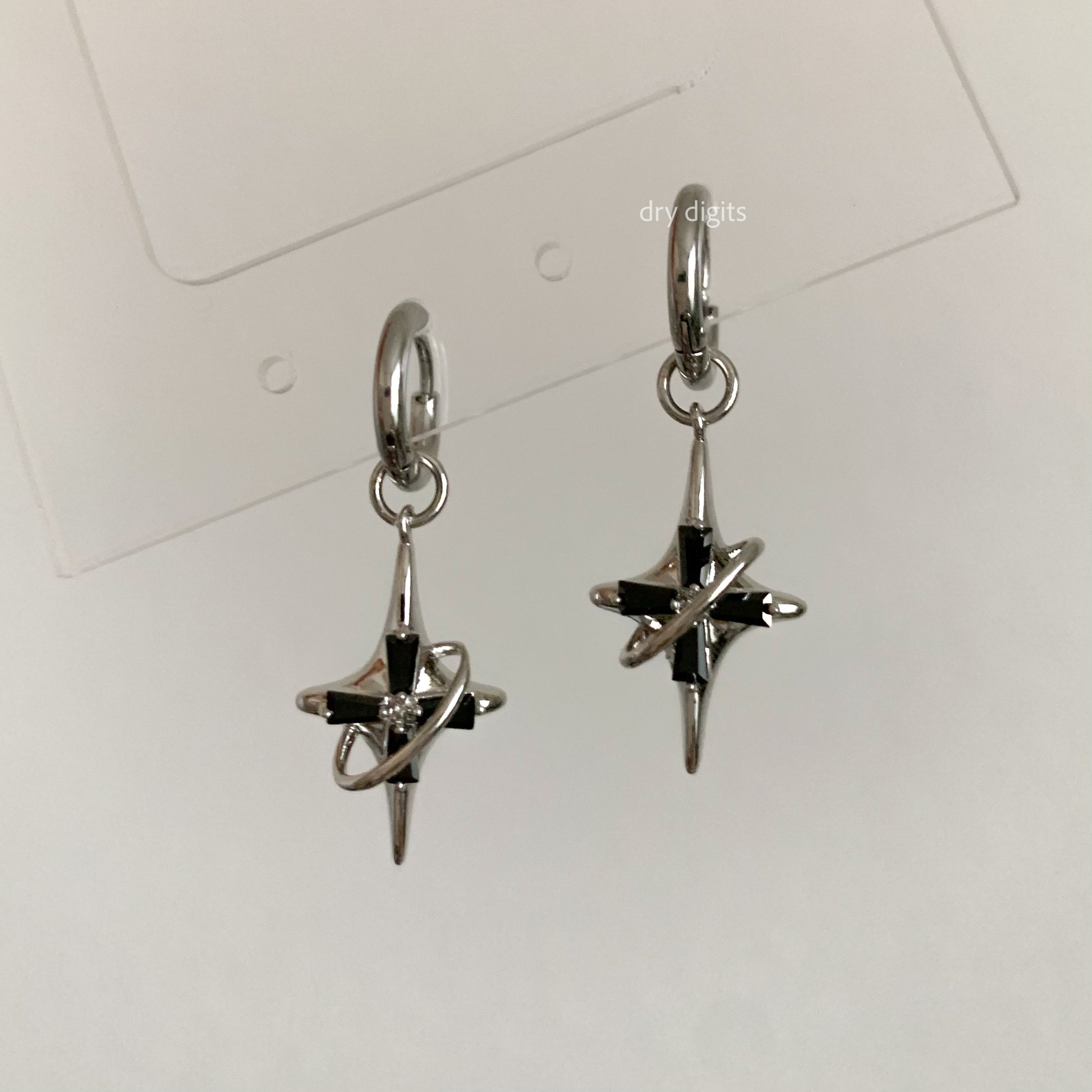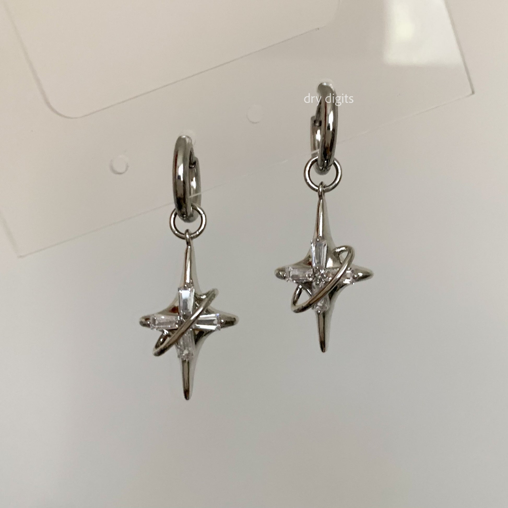 Orbit Star Hoop Earrings – Silver Cosmic Crystal Dangles