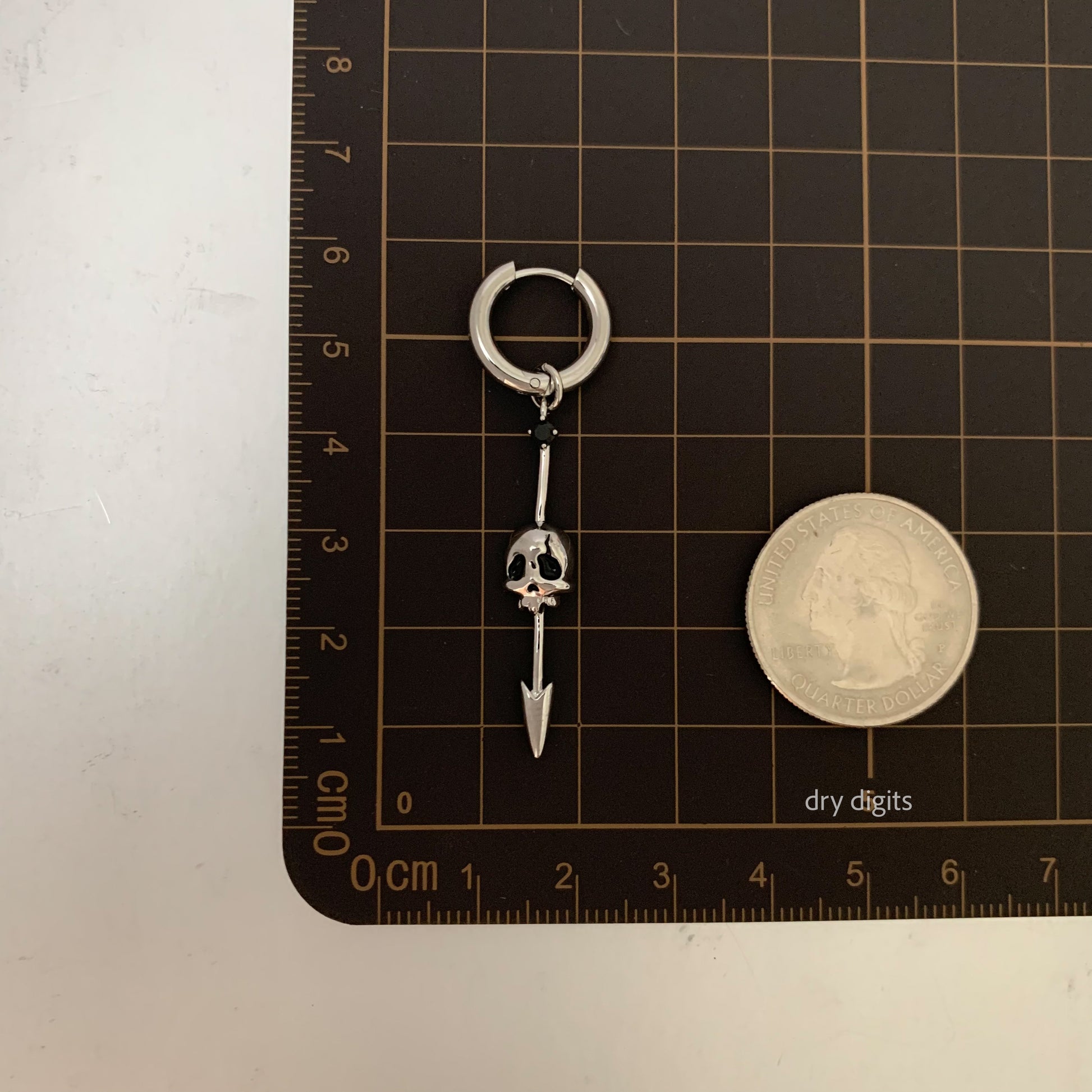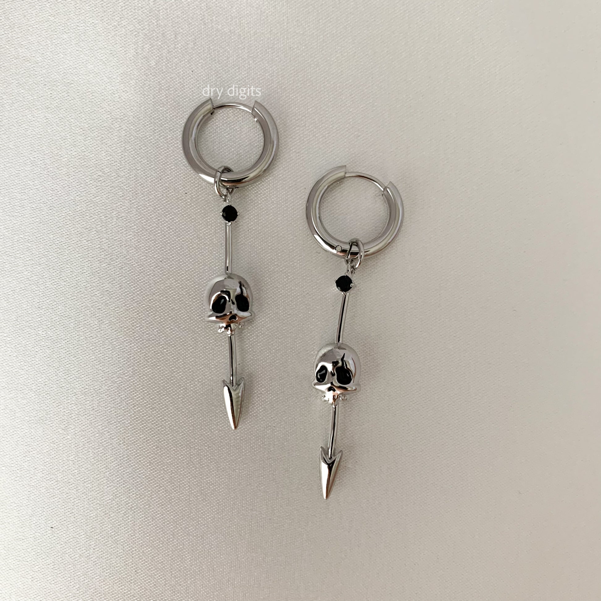 Skull Spike Hoop Earrings – Silver Gothic Dangle with Black Crystal